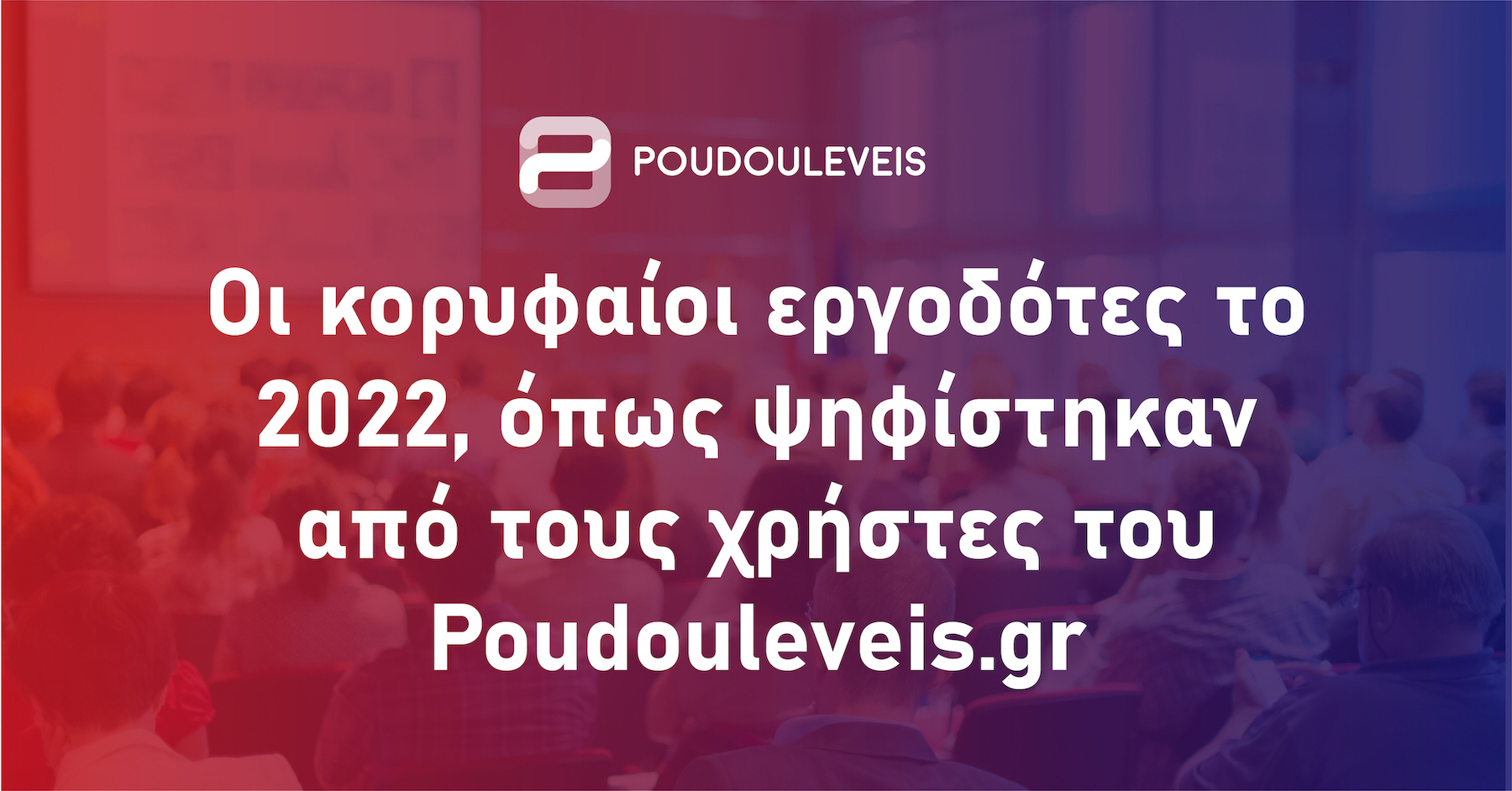 Η πλατφόρμα Poudouleveis.gr της Undelucram ανακοίνωσε τα αποτελέσματα της ετήσιας αξιολόγησης που διεξήγαγε για την ανάδειξη των καλύτερων εργοδοτών δημοσιοποιώντας τη λίστα με τους Top Employers 2022 της Ελλάδας.