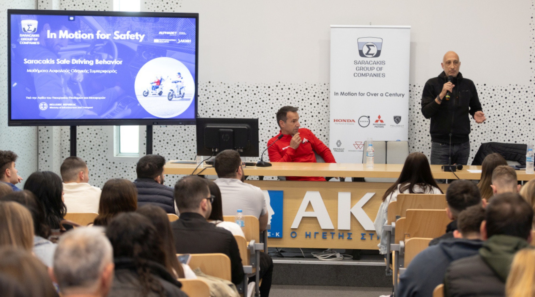 Με μεγάλη επιτυχία πραγματοποιήθηκε και το δεύτερο διαδραστικό εκπαιδευτικό σεμινάριο της πρωτοβουλίας Εταιρικής Υπευθυνότητας “In Motion for Safety” του Ομίλου Επιχειρήσεων Σαρακάκη στόχος της οποίας είναι η καλλιέργεια Κουλτούρας Ασφαλούς Οδήγησης και η διαμόρφωση Ασφαλούς Οδηγικής Συμπεριφοράς στη νέα γενιά οδηγών και αναβατών με σκοπό τη μείωση των σοβαρών τροχαίων ατυχημάτων και δυστυχημάτων.