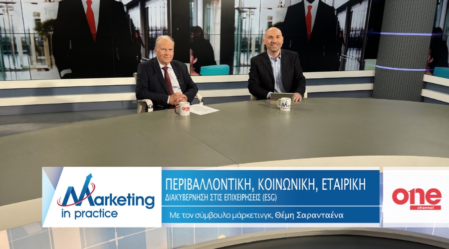 Στο νέο επεισόδιο της τηλεοπτικής εκπομπής Marketing in Practice που μεταδίδεται από το ONE Channel, ο σύμβουλος μάρκετινγκ Θέμης Σαρανταένας με καλεσμένο του στο studio τον Καθηγητή κο Νικόλαο Μυλωνά συζητούν για την Περιβαλλοντική, Κοινωνική και Εταιρική διακυβέρνηση (ESG) στις μικρομεσαίες επιχειρήσεις.