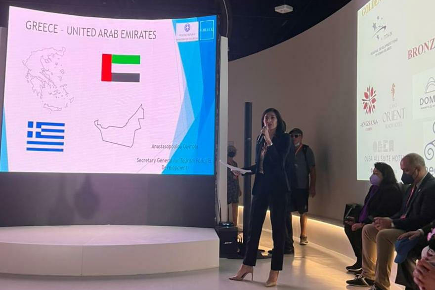Κατά την επίσκεψή της στην ΕΧΡΟ 2020 Dubai, η Γενική Γραμματέας Τουριστικής Πολιτικής και Ανάπτυξης, κυρία Ολυμπία Αναστασοπούλου, περιηγήθηκε στο ελληνικό περίπτερο και απηύθυνε ομιλία σε εκλεκτούς εκπροσώπους των φορέων τουρισμού, παρουσιάζοντας την ολιστική τουριστική εμπειρία που προσφέρει 12 μήνες το χρόνο η Ελλάδα του 2022.