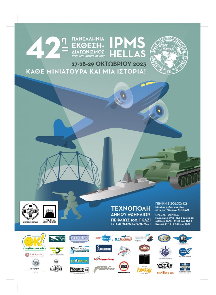27 – 29.10 || 42η Πανελλήνια Έκθεση-Διαγωνισμός στατικού μοντελισμού | IPMS Hellas | Το μεγαλύτερο μοντελιστικό γεγονός της χρονιάς  για ανθρώπους όλων των ηλικιών που αγαπούν τον μοντελισμό, την ιστορία, την ιστορική έρευνα αλλά και την τεχνολογία. Περισσότεροι από 250 Έλληνες και ξένοι μοντελιστές με διάφορα εκθέματα όπως αεροσκάφη, μινιατούρες, πλοία, οχήματα αλλά και οχήματα αντίκες σε συνεργασία με την Ελληνική Ομοσπονδία Οχημάτων Εποχής και τον Πολιτιστικό σύλλογο Αναβίωσης.