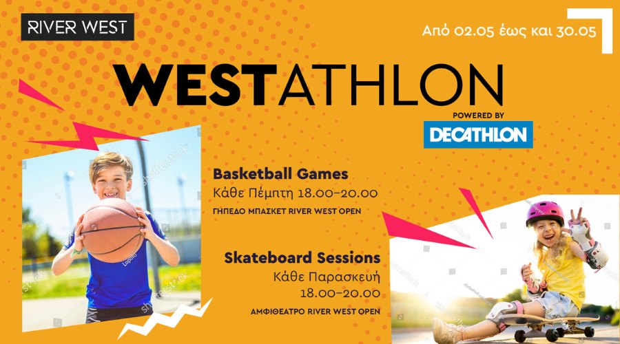Για όλο τον Μάιο, το River West σε συνεργασία με το κατάστημα Decathlon, φέρνει τον αθλητισμό πιο κοντά στα παιδιά με το Westathlon! Κάθε Πέμπτη από τις 6 έως τις 30 Μαΐου από τις 18:00 έως τις 20:00, το ανοιχτό γήπεδο του River West OPEN φιλοξενεί τα Basketball Games για ατελείωτο παιχνίδι και διασκέδαση!