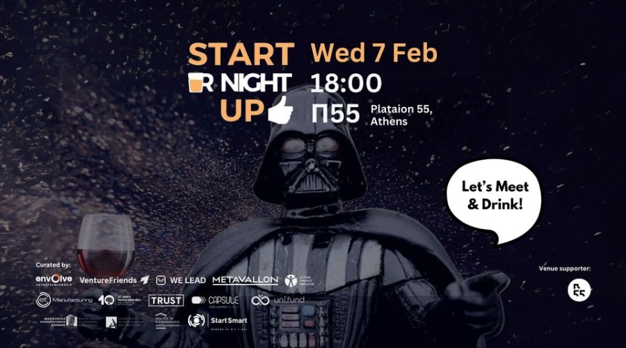 Οι VentureFriends, η Action Finance Initiative, το Venture Garden, το EIT Manufacturing, το WE LEAD, το The People’s Trust, το Metavallon Vc, το CapsuleT, το uni.fund, το Athens Center for Entrepreneurship and Innovation, το Ahead – Alba Hub for Entrepreneurship and Development και το Start Smart South Eastern Europe σε συνεργασία με το Envolve Entrepreneurship είναι curators των START your night UP meetups και σας περιμένουν για δικτύωση σε χαλαρό κλίμα! Ευχαριστούμε πολύ το P55 για τη φιλοξενία!