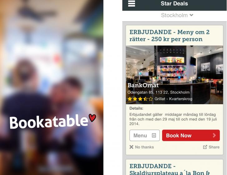 Το εστιατόριο εύκολα θα γίνει ‘showroom’ επιλογών με ηλεκτρονικά μέσα, προτεινοντας χαμηλότερες τιμές και πολλές προσφορές που θα τις βλέπεις σε οθόνη εξωτερικά, σε ένα πανελάκι στο τραπέζι και στο κινητό σου, ενώ είσαι –ας πούμε– μέσα στο μετρό. Κάτι τέτοιο μου συνέβη στη Στοκχόλμη, όπου μέσα από το Triposo app (τρομερό!) μου προτάθηκε (στο section εστιατόρια), να κατεβάσω την εφαρμογή Bookatable. Λέω, κάτσε να δούμε, μπας και μάθουμε τα ωραία φαγάδικα.Μπήκα στην εφαρμογή και έκανα browse όλα τα day options που είχαν ανέβει. Βλέπεις μενού, τις ειδικές προσφορές μενού, όλες τις τιμές, μοιράζεσαι στα social media, διαβάζεις recommendations, και κλείνεις τραπέζι αν θέλεις με μήνυμα / skype / τηλέφωνο. Μα δεν ήταν μόνο αυτό…