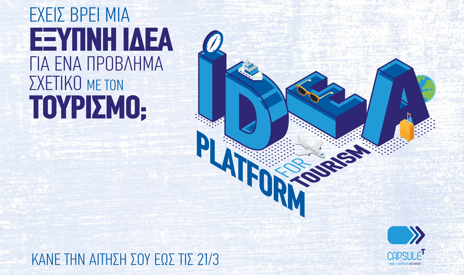 Με ταχείς ρυθμούς συνεχίζεται η υποβολή των αιτήσεων στον 3ο νεανικό διαγωνισμό Idea Platform του CapsuleT Travel & Hospitality Accelerator. Επισημαίνεται ότι η λήξη της περιόδου των αιτήσεων είναι η 21η Μαρτίου 2022.
