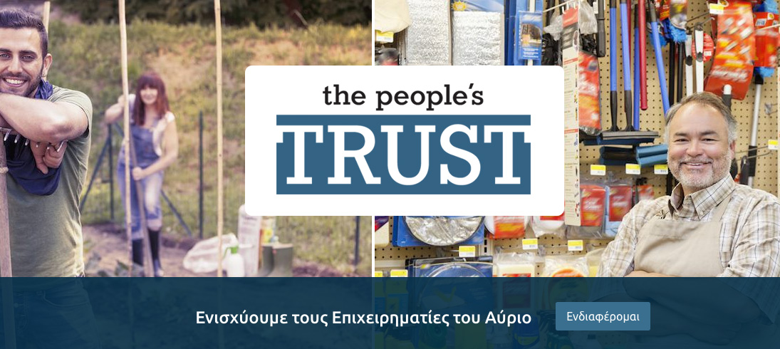 Το The People’s Trust είναι ένας ιδιωτικά χρηματοδοτούμενος μη – κερδοσκοπικός οργανισμός που ξεκίνησε τη λειτουργία του τον Μάιο, ανταποκρινόμενος στις ανάγκες που έχει δημιουργήσει η παρατεταμένη οικονομική κρίση. Στόχος του οργανισμού είναι να συμβάλει στη μείωση της ανεργίας στην Ελλάδα μέσα από την ενίσχυση της επιχειρηματικότητας και τη δημιουργία νέων θέσεων εργασίας. Το The People’s Trust υποστηρίζει νεοσύστατες και υφιστάμενες μικρές επιχειρήσεις, παρέχοντάς τους πρόσβαση σε μικροχρηματοδότηση και υπηρεσίες επιχειρηματικής ανάπτυξης.