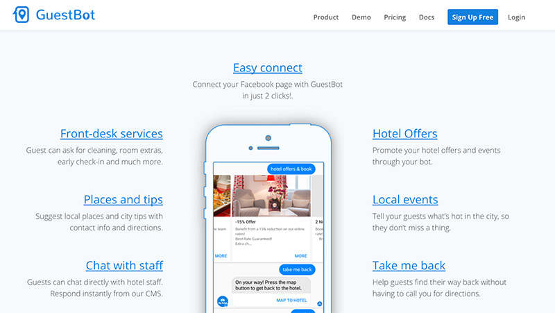 Το GuestBot, είναι ένα chatbot που καταλαβαίνει τα μηνύματα που στέλνουν οι πελάτες στη σελίδα του ξενοδοχείου στο Facebook και τους απαντά άμεσα, στη γλώσσα τους.