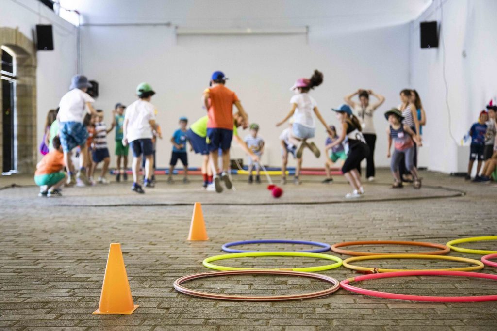 Οι ομάδες, μαζί με τους υπεύθυνους παιδαγωγούς, παίζουν κινητικά παιχνίδια στους εξωτερικούς χώρους της Τεχνόπολης για να ξεκινήσει η μέρα με τον πιο ευχάριστο τρόπο!