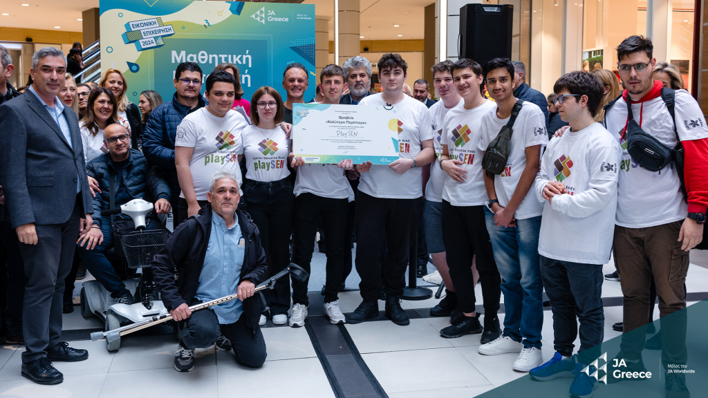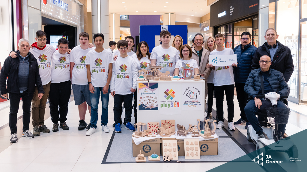 H «PlaySEN» είναι μια «επιχείρηση» παραγωγής εξειδικευμένων παιδικών παιχνιδιών τύπου Montessori, που έχει ως αντικείμενο τον σχεδιασμό, την ανάπτυξη και την προώθηση ξύλινων παιχνιδιών, ειδικά σχεδιασμένων και κατασκευασμένων από μασίφ ξύλο, υλικό φιλικό προς το περιβάλλον που μπορούν να βοηθήσουν παιδιά σχολικής και προσχολικής ηλικίας καθώς και παιδιά με ειδικές μαθησιακές δυσκολίες να αναπτύξουν λεπτές κινητικές δεξιότητες, συντονισμό χεριού-ματιού, μέτρηση όρασης, υπομονή, προσοχή και συγκέντρωση, έτσι ώστε να αποκτήσουν χρήσιμες ικανότητες και δεξιότητες απαραίτητες για την αποτελεσματική τους ένταξη στην μαθησιακή διαδικασία. Επιπλέον τα παιχνίδια αυτά απευθύνονται και σε υπερήλικες με προβλήματα μνήμης. Υπεύθυνοι εκπαιδευτικοί: Χρήστος Αδαμόπουλος, Νίκη Αγγελοπούλου, Θεοδώρα Διαμάντη, Μαρία Καζάκου, Νικόλαος Κρικής, Νικόλαος Κωνσταντόπουλος,Στέφανος Νικήτας, Μαρία Παπανικολάου, Αικατερίνη Σταυλιώτη, Ευστάθιος Φιλιππόπουλος. Εθελοντής/σύμβουλος επιχειρηματικότητας: Δημήτρης Βορρής, COFFEE ISLAND.Το βραβείο απένειμε ο κ. Νίκος Χρηστάκης, Μέλος ΔΣ JA Greece, Managing Director HP Ελλάδος και Κύπρου με τον κ. Αργύρη Τζικόπουλο, Γενικό Διευθυντή του JA_Greece.