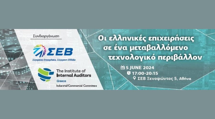 Με σκοπό την ανάδειξη των εφαρμογών και των προκλήσεων συμμόρφωσης, καθώς και του Εθνικού πλαισίου κυβερνοασφάλειας της χώρας μας, το Ινστιτούτο Εσωτερικών Ελεγκτών Ελλάδας (IIA Greece), σε συνεργασία με το Σύνδεσμο Επιχειρήσεων και Βιομηχανιών (ΣΕΒ), διοργανώνει εκδήλωση με θέμα “Οι Ελληνικές Επιχειρήσεις σε ένα Μεταβαλλόμενο Τεχνολογικό Περιβάλλον”. Η εκδήλωση θα πραγματοποιηθεί την Τετάρτη 5 Ιουνίου στις 17:00 στα γραφεία του ΣΕΒ.