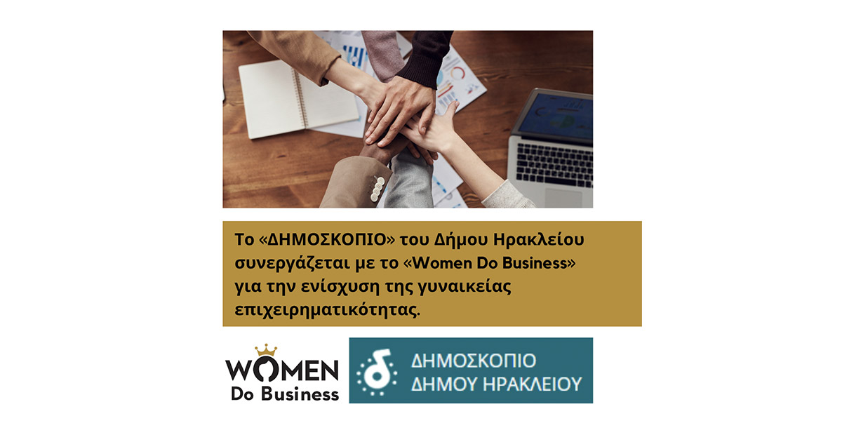 Το «ΔΗΜΟΣΚΟΠΙΟ» του Δήμου Ηρακλείου συνεργάζεται με το «Women Do Business» για την ενίσχυση της γυναικείας επιχειρηματικότητας.