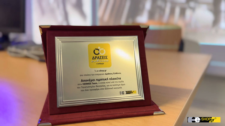Κατά την διάρκεια της συνάντησης, το e-shop.gr προσέφερε δωρεάν τεχνολογικό εξοπλισμό θέλοντας να υποστηρίξει έμπρακτα το σπουδαίο έργο των φοιτητών και απένειμε τιμητική πλακέτα στον Υπεύθυνο καθηγητή της ομάδας ,κ. Νικόλαο Μπέλα, ενώ η φοιτητική ομάδα Hermes έκανε μια εκτενή παρουσίαση για τον σκοπό και την σημασία  του εξοπλισμού στις ζωές πολλών συνανθρώπων μας.