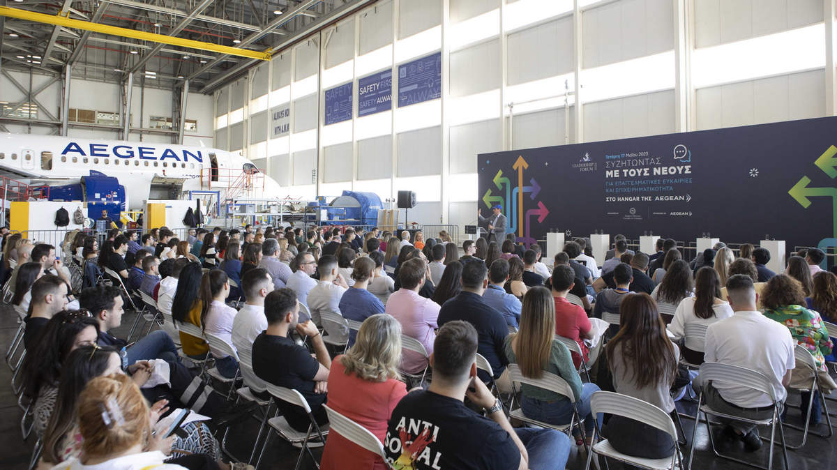 Με στόχο να ενημερωθούν οι νέοι, ηλικίας 17-28 ετών, από ανώτερα διευθυντικά στελέχη και επιχειρηματίες για τις προκλήσεις και τις επαγγελματικές ευκαιρίες του μέλλοντος, πραγματοποιήθηκε η εκδήλωση για πρώτη φορά στη τεχνική βάση (hangar) που διαθέτει η ΑEGEAN στον Διεθνή Αερολιμένα Αθηνών «Ελευθέριος Βενιζέλος», την Τετάρτη 17 Μαΐου. Την εκδήλωση παρακολουθήσαν μαθητές της τελευταίας τάξης Λυκείου, φοιτητές και νέοι εργαζόμενοι, οι οποίοι έθεσαν ερωτήματα και μοιράστηκαν προβληματισμούς σχετικά με την επαγγελματική τους σταδιοδρομία. Επίσης, είχαν τη δυνατότητα να γνωρίσουν τις ευκαιρίες καριέρας που προσφέρονται στον κλάδο των αερομεταφορών.