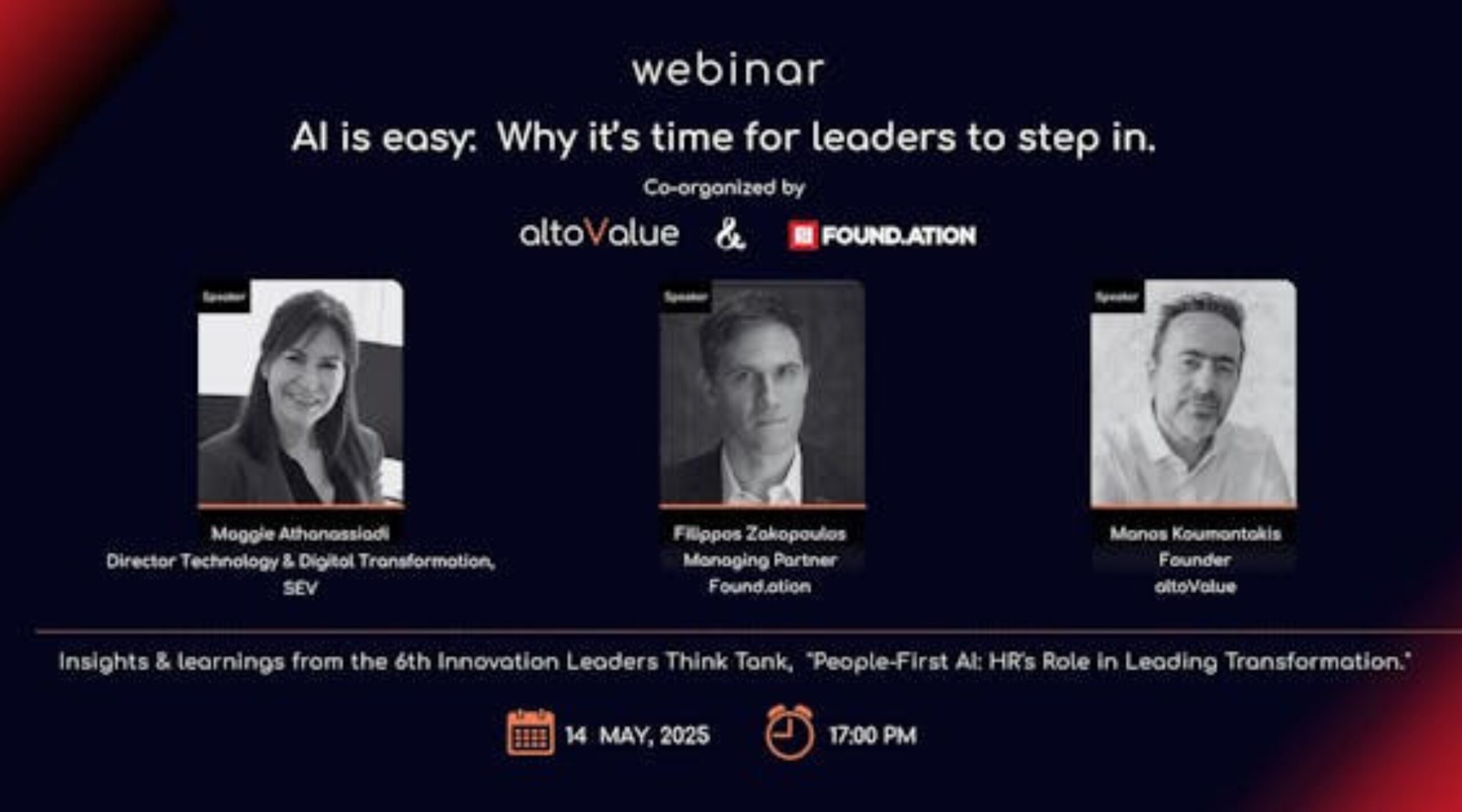 Στις 14 Μαΐου, το Found.ation και η altoValue συνδιοργανώνουν το Webinar “AI is easy: Why it’s time for leaders to step in!”