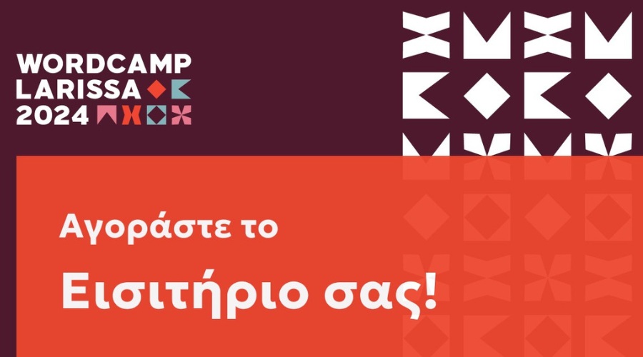 Τα εισιτήρια για το πρώτο WordCamp Larissa και το μοναδικό WordCamp στην Ελλάδα για φέτος, είναι πλέον διαθέσιμα. Πρόκειται για μια εξαιρετική ευκαιρία για επαγγελματίες και λάτρεις του χώρου της τεχνολογίας να συναντηθούν, να ανταλλάξουν ιδέες και να ενημερωθούν για τις τελευταίες εξελίξεις στο web development, το design, τη δημιουργία και τη δημοσίευση περιεχομένου, το marketing, αλλά και φυσικά το WordPress.