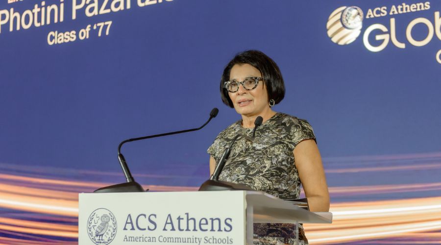 «Νιώθω μεγάλη χαρά και περηφάνια που βρίσκομαι ανάμεσα σε τόσο αξιότιμους καλεσμένους και επιτυχημένους αποφοίτους του σχολείου μας. Είναι μεγάλη τιμή να εκπροσωπώ το ACS Athens από τη θέση της Προέδρου και να παρακολουθώ με μεγάλη συγκίνηση την αξιοθαύμαστη προσφορά των εθελοντών μαθητών μας που μέσα από τον ενθουσιασμό και την ενέργειά τους, αποτελούν παράδειγμα των αξιών της ενσυναίσθησης, της υπευθυνότητας και της ενεργού συμμετοχής, εμπνέοντάς μας όλους να κάνουμε τη θετική διαφορά στον κόσμο. Είμαστε ένα σχολείο που καθοδηγεί με το παράδειγμα του»