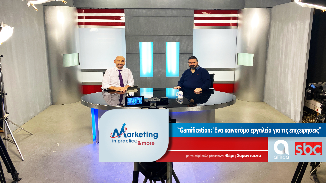 Στο νέο επεισόδιο της τηλεοπτικής εκπομπής Marketing in Practice o σύμβουλος μάρκετινγκ Θέμης Σαρανταένας με καλεσμένο στο studio του Attica TV/SBC TV Channel τον σεναριογράφο, σκηνοθέτη, & storyteller Δημήτρη Σαββαΐδη, συζητούν για το Gamefication, το νέο εργαλείο που θα πρωτοστατήσει μελλοντικά στις δράσεις μάρκετινγκ κάθε επιχείρησης.
