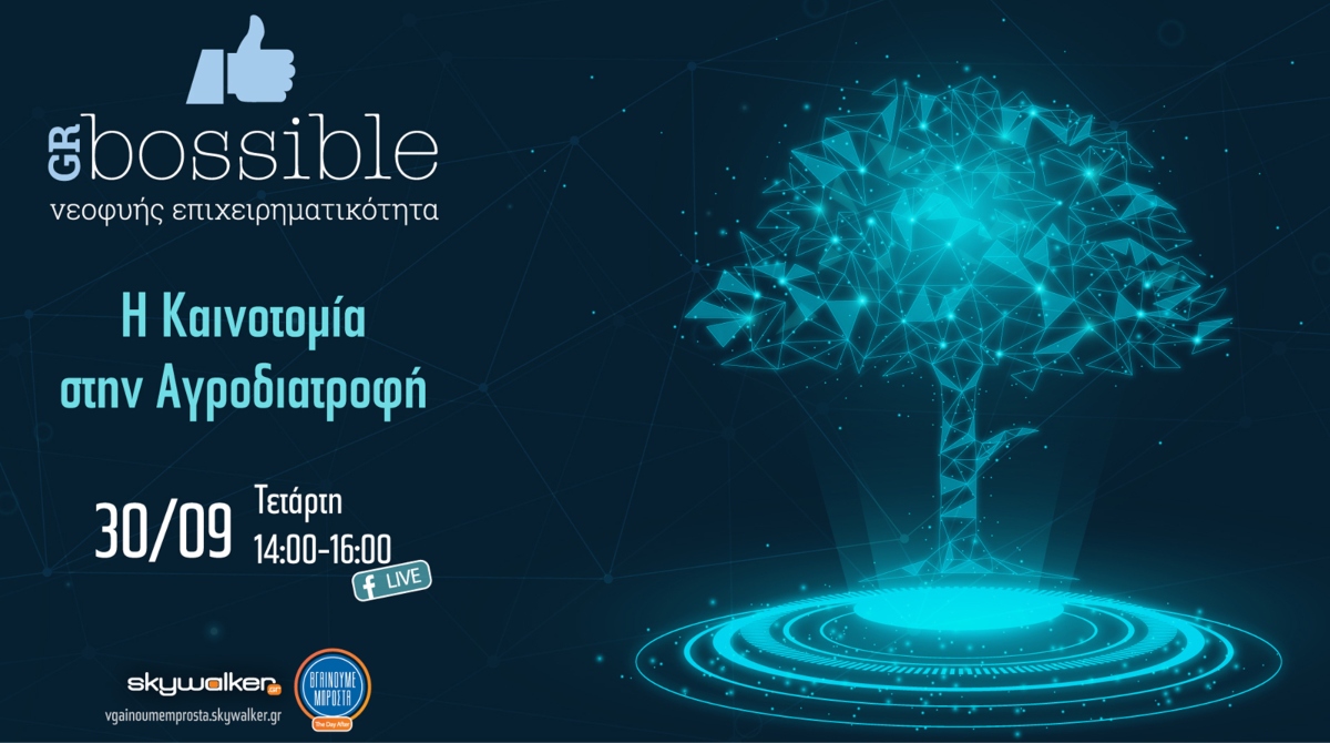 Το skywalker.gr στο πλαίσιο των δράσεων GRBossible για την επιχειρηματικότητα, διοργανώνει την Τετάρτη 30 Σεπτεμβρίου και ώρα 14:00 έως 16:00 την ημερίδα με θέμα «Η καινοτομία στην αγροδιατροφή».
