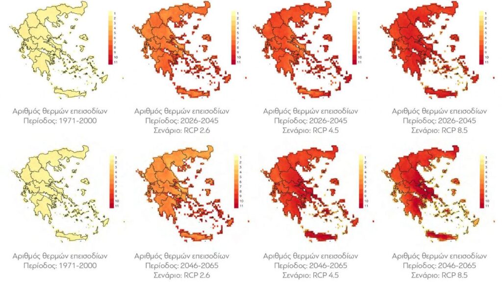 – Οι ημέρες με καύσωνα στην Ελλάδα θα αυξηθούν κατά 15-20 ημέρες ετησίως.