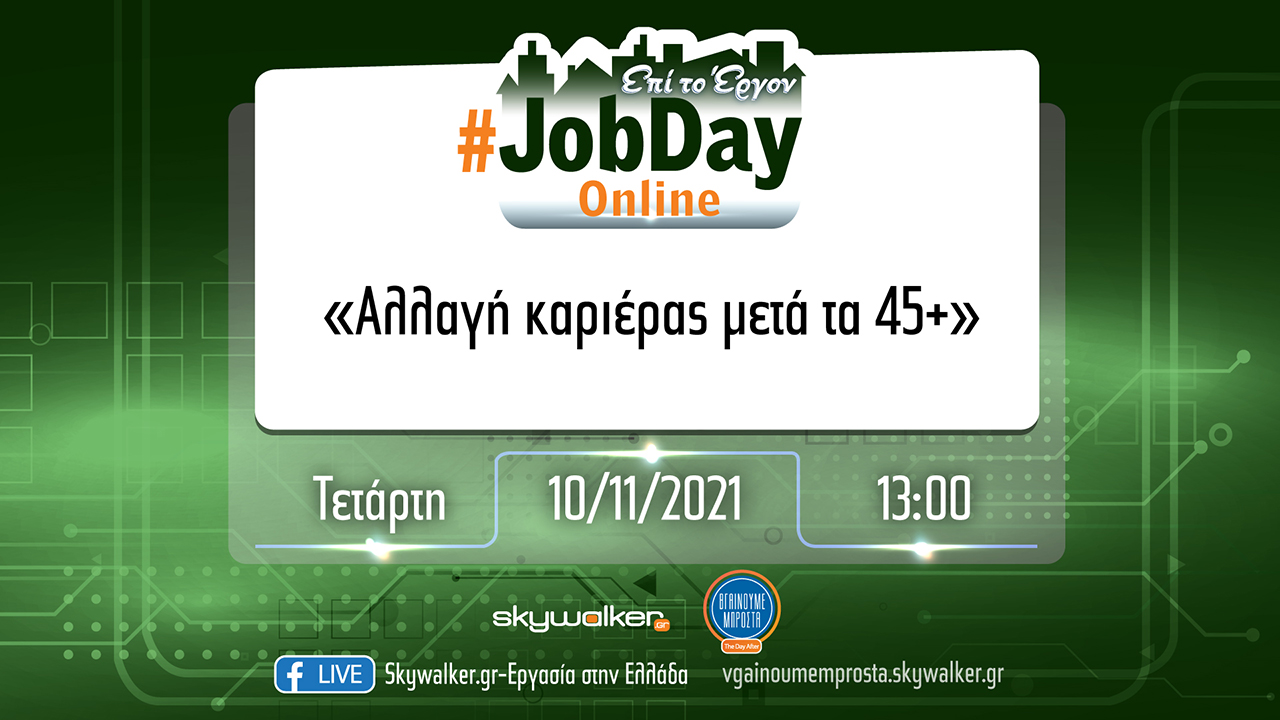 Επιπλέον, μπορούν να δουν το video του Online #JobDay «Αλλαγή καριέρας μετά τα 45+» σε αυτό το link.