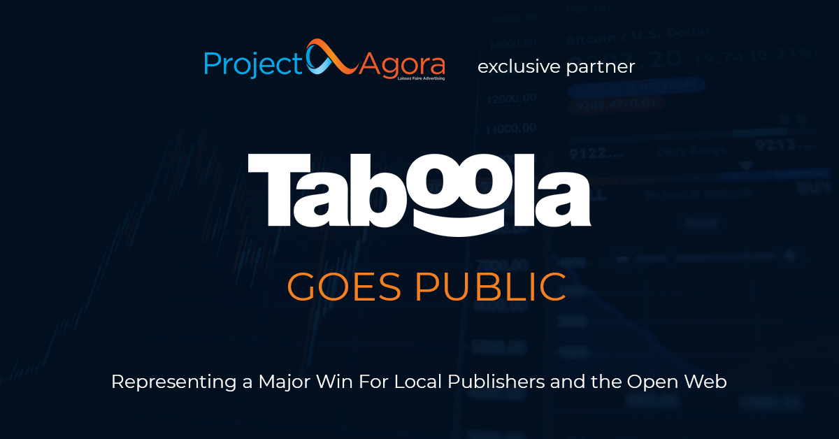 Την εισαγωγή της στο χρηματιστήριο ολοκλήρωσε πριν λίγες μέρες η Taboola, αποκλειστικός συνεργάτης του Project Agora στην Ελλάδα. Η επιτυχία αυτή καθιερώνει την εταιρία ως κορυφαίο παίκτη στη διαφήμιση και αντιπροσωπεύει μια σημαντική νίκη για τους τοπικούς ψηφιακούς εκδότες και το Ανοιχτό Διαδίκτυο (Open Web).