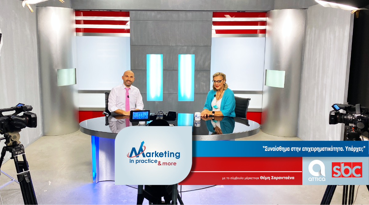 Στο νέο επεισόδιο της τηλεοπτικής εκπομπής Marketing in Practice o σύμβουλος μάρκετινγκ Θέμης Σαρανταένας με καλεσμένη στο studio του Attica TV/SBC TV Channel την Ψυχολόγο – Κοινωνική Ερευνήτρια Αγνή Μαριακάκη, συζητούν για τα συναισθήματα που υπάρχουν ή γεννιούνται κατά την επιχειρηματικότητα δραστηριότητα και πως αυτά μπορούν να επηρεάσουν τις αποφάσεις μας.