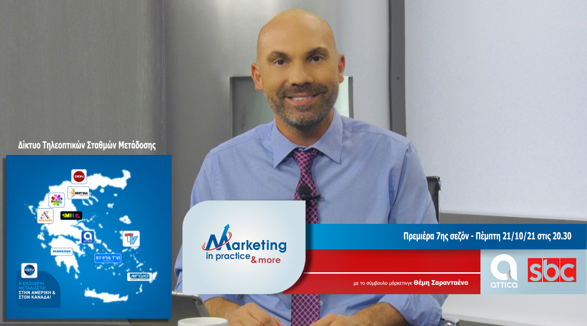 Για 7η συνεχόμενη χρονιά επιστρέφει στην Ελληνική τηλεόραση, η μοναδική μακροβιότερη τηλεοπτική εκπομπή για το μάρκετινγκ και την επιχειρηματικότητα «Marketing in Practice» που επιμελείται και παρουσιάζει ο σύμβουλος μάρκετινγκ Θέμης Σαρανταένας.