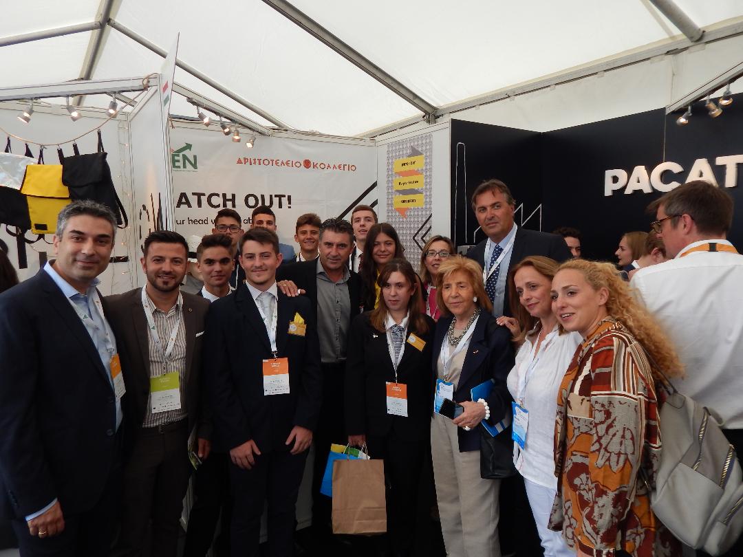 Η ελληνική ομάδα «Watch Out» από το Αριστοτέλειο Κολλέγιο Θεσσαλονίκης είχε εξαιρετική παρουσία στο διαγωνισμό και απέσπασε πολύ θετικά σχόλια από τους κριτές, τους επισήμους και τις άλλες μαθητικές ομάδες. Οι μαθητές της Α’ Λυκείου που διαγωνίσθηκαν, Πασχάλης Κυζάκης, Σαμουήλ Μόσιος, Νικολέτα Καλούτσικου, Δημήτρης Καραμπουρνιώτης και Χριστόφορος Δημητρακόπουλος, είναι ενθουσιασμένοι από τις εμπειρίες ζωής που τους προσέφερε η συμμετοχή τους στο πρόγραμμα «Εικονική Επιχείρηση» του Σωματείου Επιχειρηματικότητας Νέων/Junior Achievement Greece από την αρχή της σχολικής χρονιάς και που κορυφώθηκε με τη συμμετοχή τους στον σπουδαίο Πανευρωπαϊκό Διαγωνισμό στις Βρυξέλλες. Η ελληνική αποστολή αποτελείτο και από τους μαθητές Αριάννα Aραμπατζή, Θανάση Κατσίκη, Γιώργο Θεοδωρίδη, την καθηγήτρια που καθοδήγησε τα παιδιά Μαρία Δαμαλή, τον υποδιευθυντή του Αριστοτελείου Κολλεγίου Δημήτρη Γκροζούδη, τον εθελοντή-επιχειρηματικό σύμβουλο της ομάδας Κυριάκο Κελίδη από την εταιρεία ΤΙΤΑΝ, την πρόεδρο του ΣΕΝ/JA Greece Λίτσα Παναγιωτοπούλου, τον Γενικό Διευθυντή Αργύρη Τζικόπουλο, την υπεύθυνη του προγράμματος «Εικονική Επιχείρηση» Ελίζα Παυλίδη και την υπεύθυνη επικοινωνίας Μαρία Γιαννέτου.