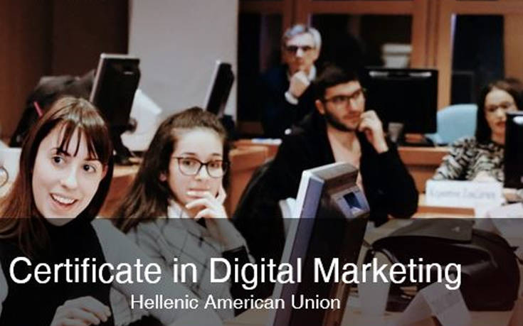 Εάν θέλεις να ασχοληθείς επαγγελματικά με το digital marketing, αν είσαι επιχειρηματίας και θέλεις να προωθήσεις δυναμικά την επιχείρησή σου σε online κανάλια, το εκπαιδευτικό πρόγραμμα Certificate in Digital Marketing της Ελληνοαμερικανικής Ένωσης θα σου δώσει τις βασικές γνώσεις που χρειάζεσαι για να σχεδιάζεις και να εκτελείς μια στρατηγική digital marketing.