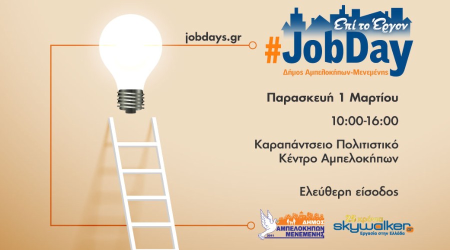 Το #JobDay Αμπελόκηποι-Μενεμένη απευθύνεται σε όποιον αναζητά εργασία ή σκέφτεται να αλλάξει επάγγελμα και θέλει να διευρύνει τις γνώσεις και τις δεξιότητές του δημιουργώντας ένα καλύτερο βιογραφικό και συγκεντρώνοντας όλες εκείνες τις πληροφορίες που θα τον βοηθήσουν να γίνει περιζήτητος στην αγορά εργασίας.