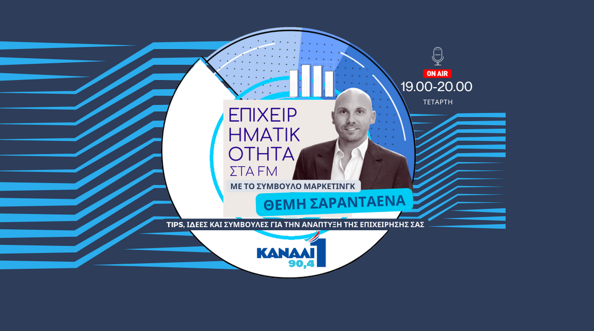 Μετά από 3 χρόνια αποχής από το ραδιόφωνο ο σύμβουλος μάρκετινγκ επιστρέφει με την επιχειρηματική εκπομπή «Επιχειρηματικότητα στα FM» από το Κανάλι 1 – 90,4 FM.