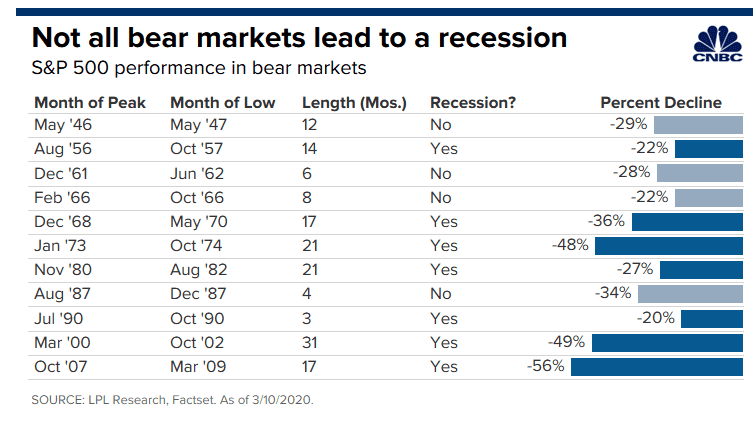 Φυσικά, στο παρελθόν υπάρχουν περιπτώσεις κατά τις οποίες οι αγορές μπήκαν σε bear market, αλλά δεν ακολούθησε ύφεση.
