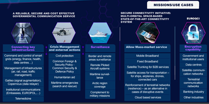 Τον στόχο για μια πλήρως συνδεδεμένη ήπειρο προσπαθεί να υλοποιήσει η Ευρωπαϊκή Ένωση, ενεργοποιώντας κάθε δυνατό μέσο, μεταξύ αυτών και τη διαστημική συνδεσιμότητα. Σε αυτό το πλαίσιο, η Ευρώπη εγκαινιάζει δορυφορικό σύστημα συνδεσιμότητας, επενδύοντας €6 δισ.