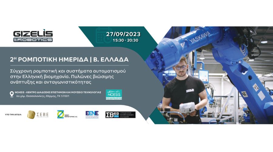 Στις 27 Σεπτεμβρίου 2023 διοργανώνεται η 2η Ρομποτική Ημερίδα GIZELIS ROBOTICS SA | Β.ΕΛΛΑΔΑ με θέμα: Σύχρονη ρομποτική και συστήματα αυτοματισμού στην Ελληνική βιομηχανία, στο ΝΟΗΣΙΣ.