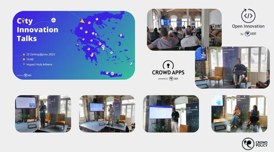 Το City Innovation talks διοργανώνεται από την ελληνική εταιρεία καινοτομίας και τεχνολογίας Crowdpolicy στο πλαίσιο της υλοποίησης δράσεων προώθησης του ψηφιακού μετασχηματισμού, της επιχειρηματικότητας και της καινοτομίας σε περισσότερους από 75 Δήμους της χώρας μας.