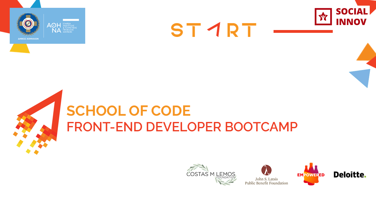 Πραγματοποιήθηκε την Τρίτη 15 Νοεμβρίου στο Σεράφειο του Δήμου Αθηναίων η εκδήλωση έναρξης του 4ου εκπαιδευτικού κύκλου δωρεάν μαθημάτων του START School of Code: Front–End Developer Bootcamp, που υλοποιεί η Socialinnov στο πλαίσιο του προγράμματος START Project. Το πρόγραμμα υλοποιείται με την υποστήριξη του Costas M. Lemos Foundation, του Κοινωφελούς Ιδρύματος Ιωάννη Σ. Λάτση, του προγράμματος Εmpowered της Coca-Cola Τρία Έψιλον, της Εταιρείας Ανάπτυξης και Τουριστικής Προβολής του Δήμου Αθηναίων (EATA), καθώς και της Deloitte ως εταίρου απασχολησιμότητας.